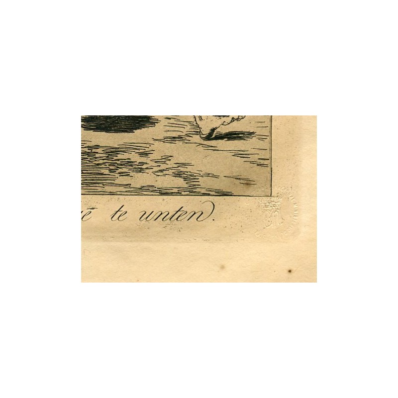Five sets, numbered 1-5 were dedicated to Stalin, Mrs. Eleanor Rooselvet, and for the Republican President Azaña, President of the Republic, leaving two sets unaccounted for. Fifteen series numbered 6-20, on Imperial Japan paper were also issued. It appears that shortly after the outbreak of the Spanish Civil War, all Goya´s copperplates were going to be sent to Paris with a view to printing an edition there. The work was finally undertaken in the Calcografía. One of the first series issued in 1937 was gifted by the Spanish Embassy in London to the Victorian and Albert Museum, where it was exhibited. Thomas Harris states that this edition is a very well printed.