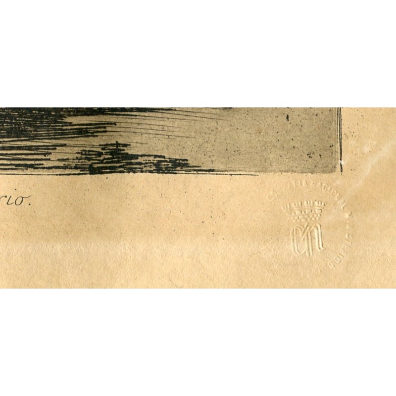 This edition was made by Rupérez in the Calcografía Nacional for the Ministerio de Instrucción Pública in 1937, during the Spanish Civil War. Plate measures: 21,4x15,1 cms. Sheet measures: 38x28,5 cms. The present engraving has the number 11 on the back. It has a embossed stamp with the initials 'CN' surrounded by a border which reads: Calcografia Nacional Ministerio de Instrucción Pública.Recipient :