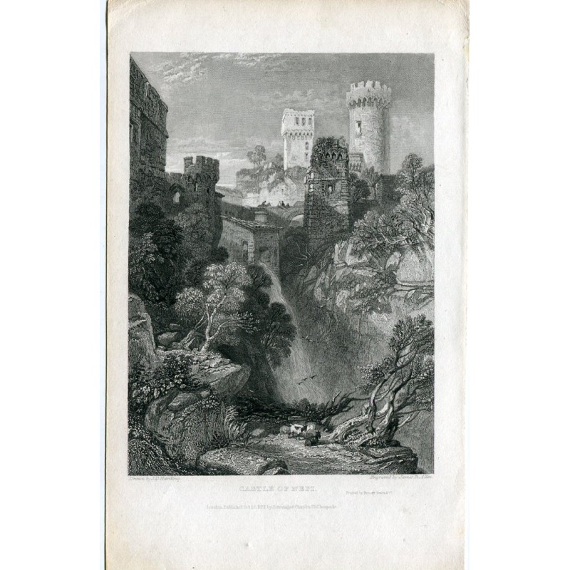 Italy. "Castle of Nepi" Engraving by James B. Allen drawn by JD Harding in 1831