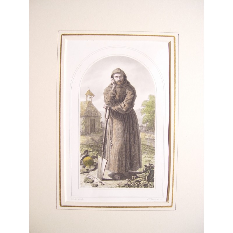 Original engraving from the 11th century, colored by hand. Measures 13.3 x 7.3 cm. Leloir drew. Record Mme. Fournier. Good conservation.Recipient :