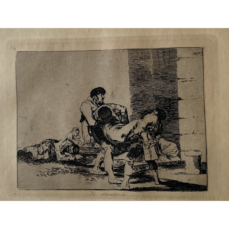 Aguafuerte de Goya. Al cementerio ('Al cementerio'). Lámina 56 de la serie de grabados Disasters of War, edición de 1937.
