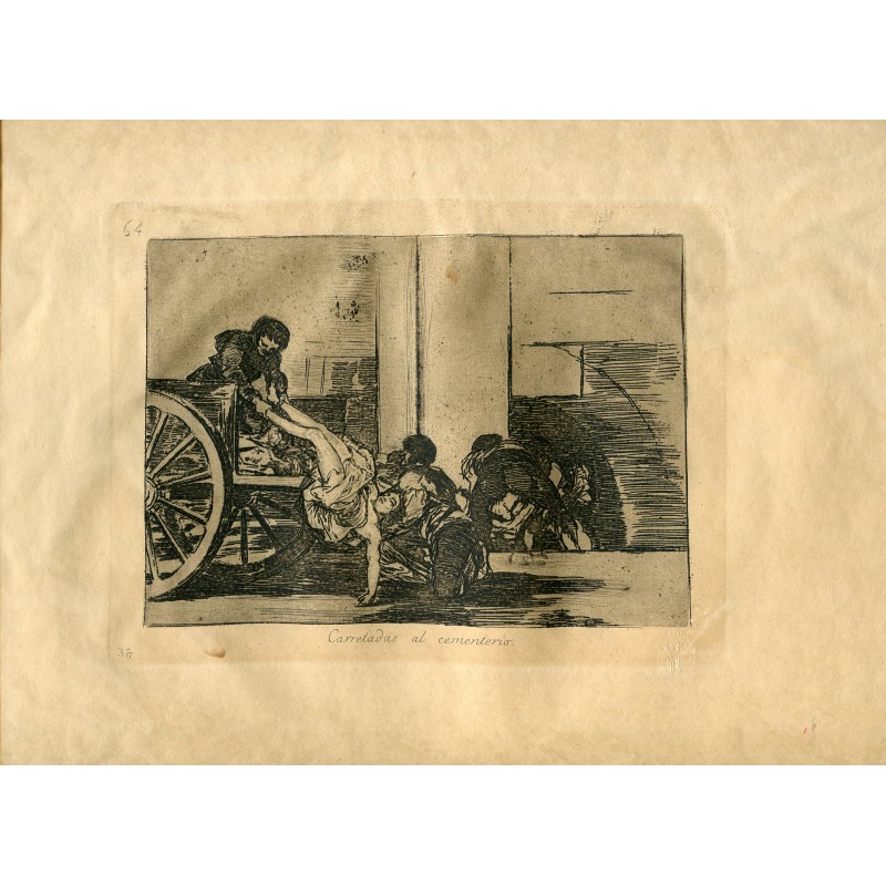 Aguafuerte de Goya. Carretas al cementerio. Lámina 64 de la serie de grabados Disasters of War edición 1937.