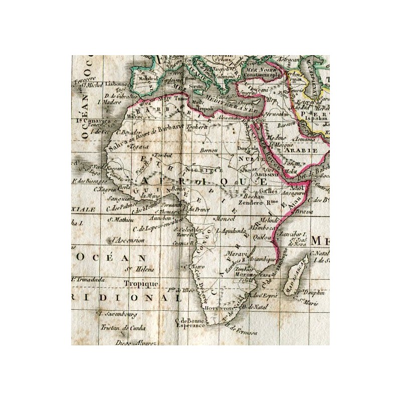 Mapa antiguo del mundo. Mappe-Monde. De Vaugondy, Delamarche, 1804