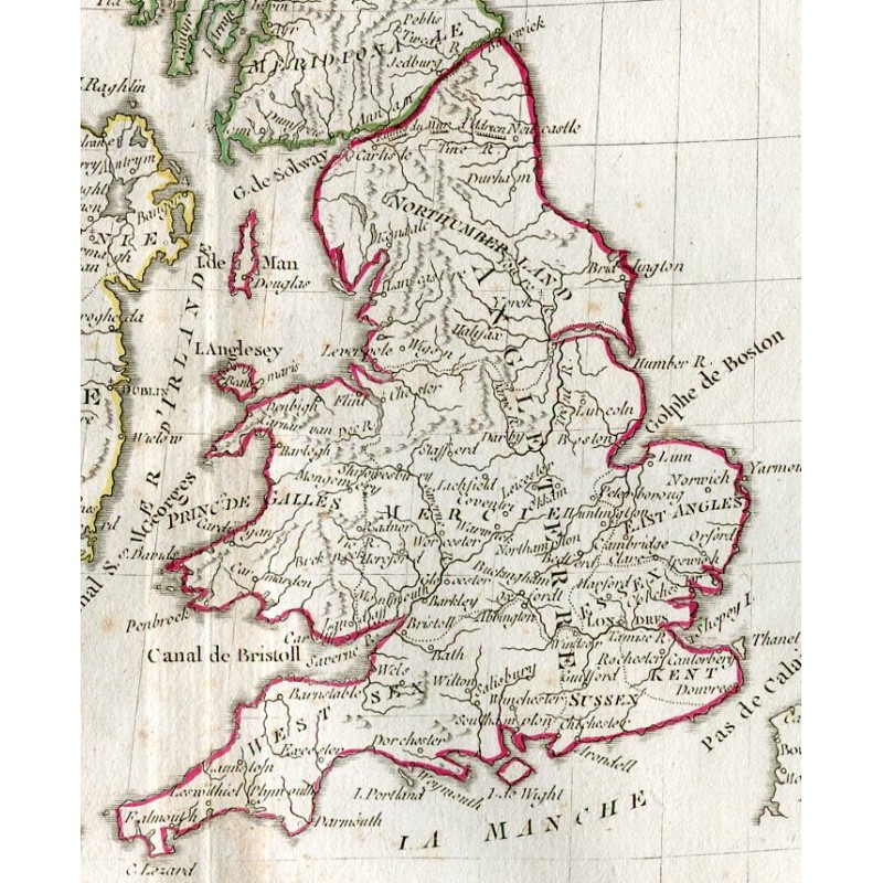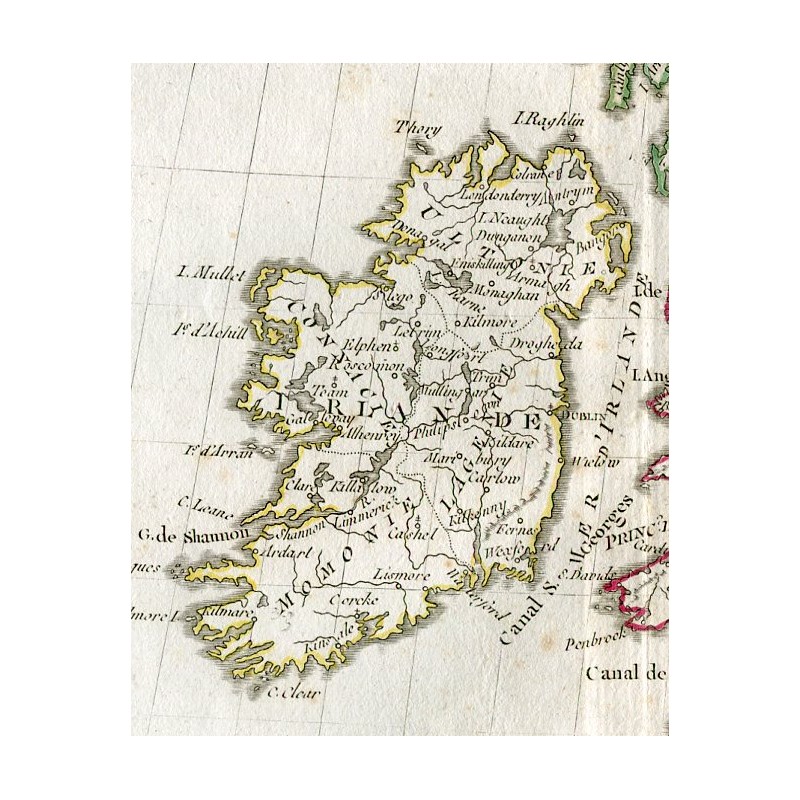 Mapa antiguo de Reino Unido. Roberto de Vaugondy (1794)