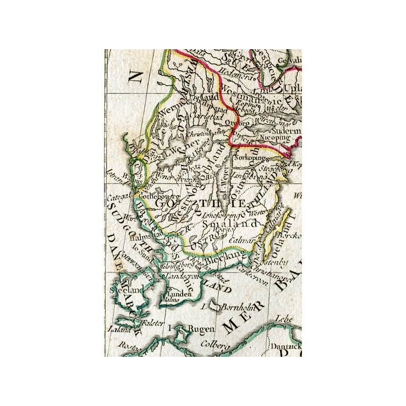 Mapa antiguo de Suecia. Roberto de Vaugondy (1794)