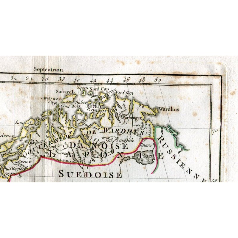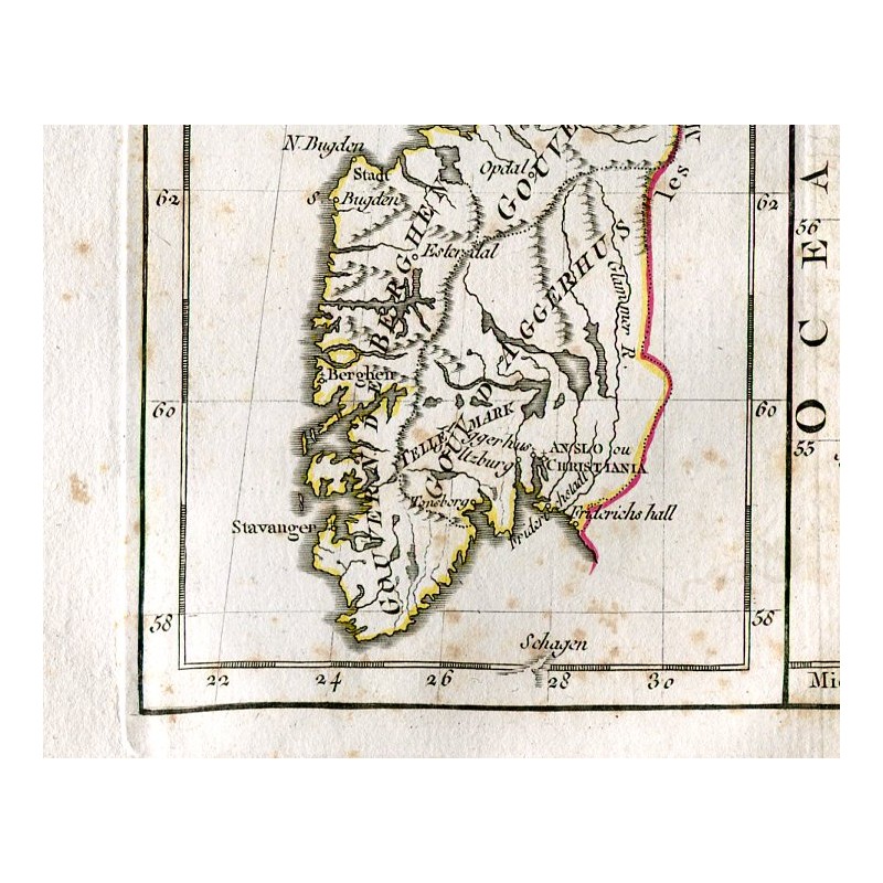 Mapa antiguo de Noruega y Dinamarca. Roberto de Vaugondy (1794)