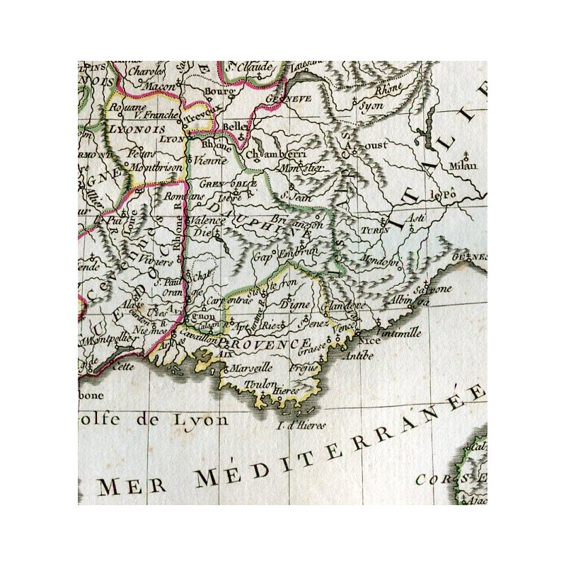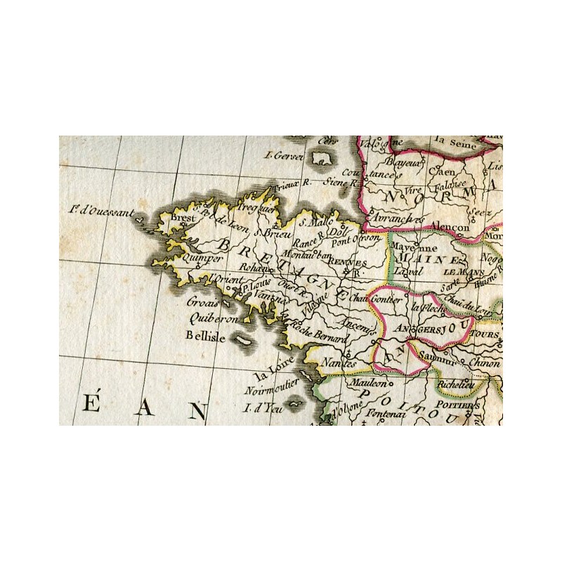 Mapa antiguo de Francia. Roberto de Vaugondy (1806)
