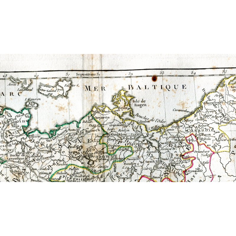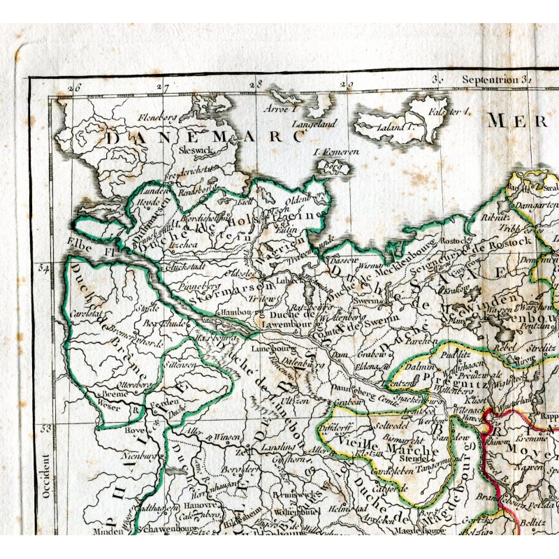 Mapa antiguo de las regiones del norte de Alemania. Roberto de Vaugondy.