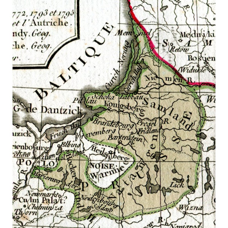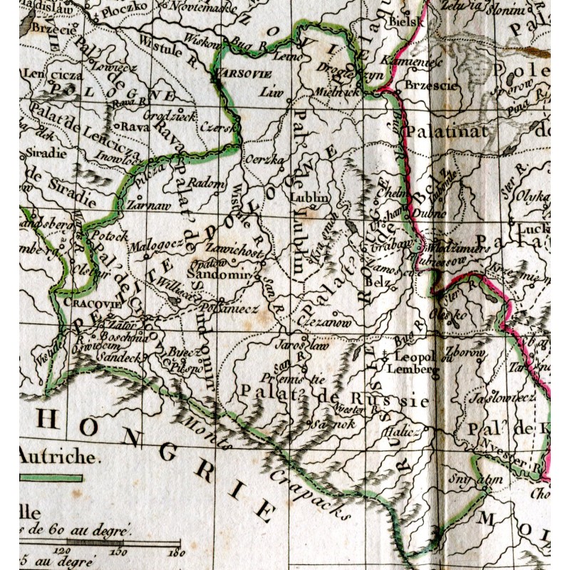 Mapa antiguo de Polonia. Roberto de Vaugondy (1772, 1793, 1795)