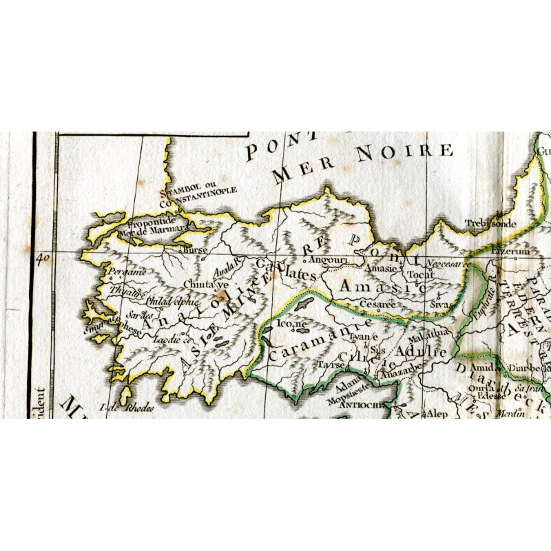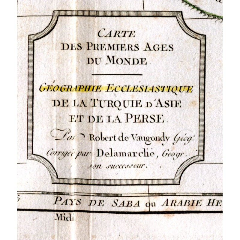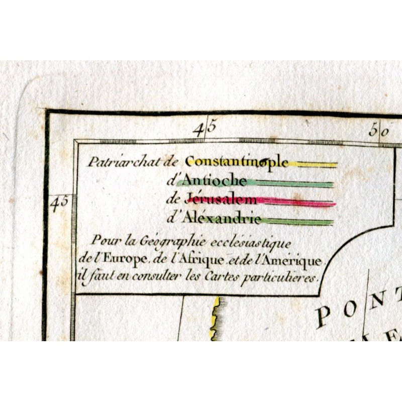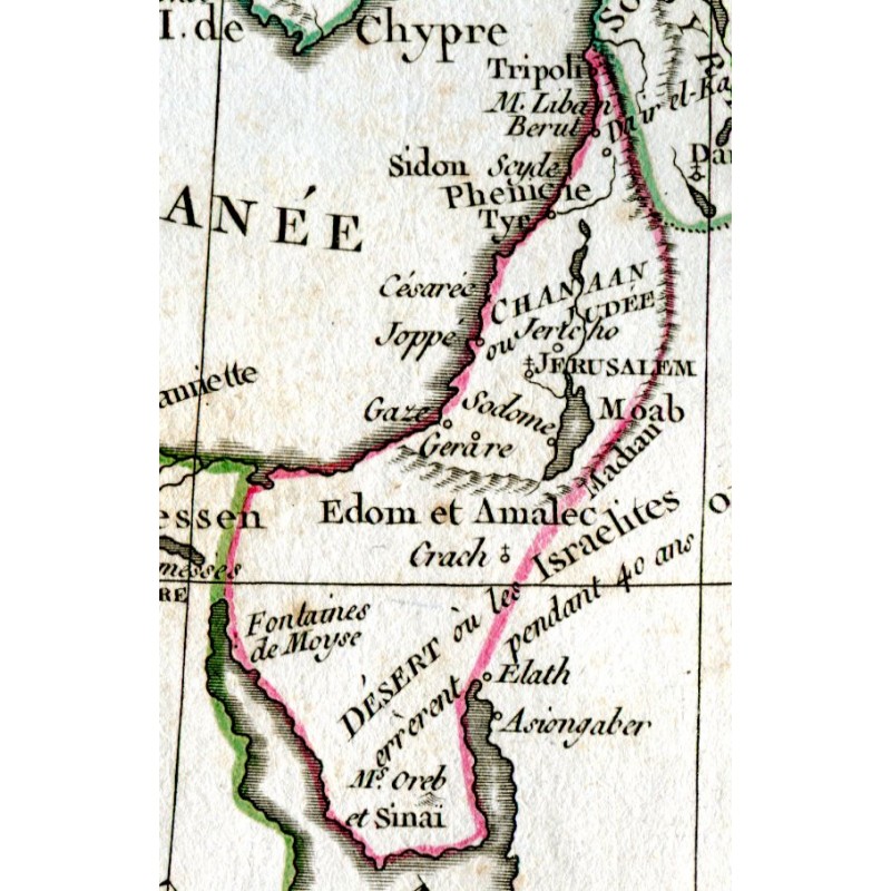 Tamaño de la plancha: 26,1x29,7 cm. Tamaño del papel: 31,8x45 cm. Estado: Manchas de óxido que se aprecian en la imagen. Gilles Robert de Vaugondy (1688-1766) y su hijo, Didier Robert de Vaugondy (1723-1786), formaron uno de los talleres de fabricación de mapas y globos terráqueos más destacados y reconocidos de Francia a mediados del siglo XVIII. Eran descendientes de uno de los cartógrafos más importantes del siglo anterior, Nicolas Sanson a través de su nieto Pierre Moulard-Sanson, de quien en 1730 heredaron la mayor parte del material cartográfico que la dinastía Sanson había acumulado durante casi un siglo de trabajo, material que completaron con el adquirido de los descendientes de Hubert Jaillot. Con ellos formaron la base con la que iniciar su obra más ambiciosa y conocida, el Atlas Universel (1757), uno de los más bellos atlas producidos por la escuela francesa a mediados de siglo. Para ello, los Vaugondy, que contaban con una excelente formación geográfica, integraron la información obtenida de la revisión de los materiales heredados más antiguos con los mapas más actualizados del momento, incluyendo nuevos topónimos, las últimas investigaciones académicas, los diarios de los exploradores y misioneros contemporáneos. e incluso observación astronómica, a veces comprobando y corrigiendo la latitud y longitud de muchos mapas a partir de sus propias observaciones. Además, a diferencia de muchos cartógrafos de la época, se esforzaron en indicar las fuentes que utilizaron para elaborarlos, al igual que hicieron en su momento cartógrafos tan destacados como Ortelius o Mercator. Ambos trabajaron juntos y, en ocasiones, no es posible atribuir sus mapas al padre o al hijo, ya que muchas veces firmaban con el apellido, sin las iniciales, aunque en otros casos la autoría puede determinarse por la forma distintiva de cada uno. : el padre normalmente usa "M. Robert" y el hijo "Robert de Vaugondy". Ambos recibieron el título honorífico de Geographe ordinaire du Roy, el padre en 1730 y Didier en 1760. A la muerte del hijo, el taller cartográfico pasó a Jean Fortin monos, en 1778, y más tarde a Charles Francis Delamarche. Más artículos se pueden encontrar en nuestra tienda en el sitio: //https://www.rubylane.com/item/2211649