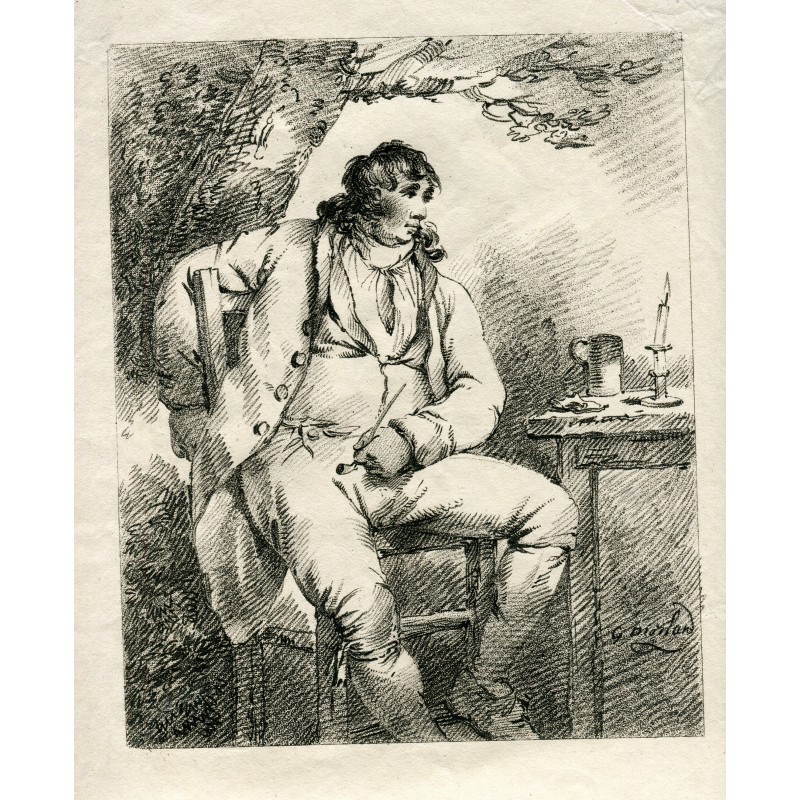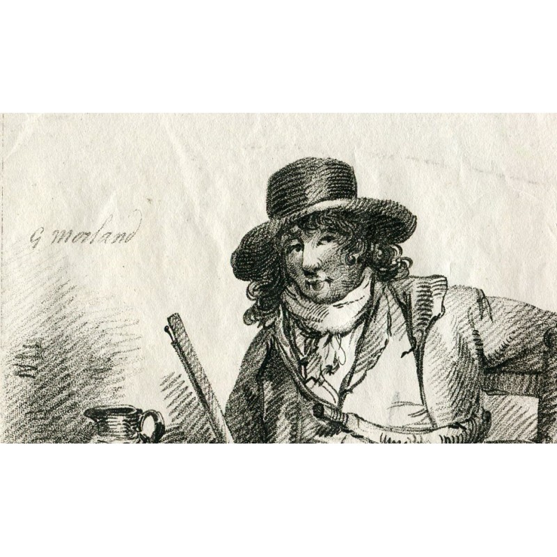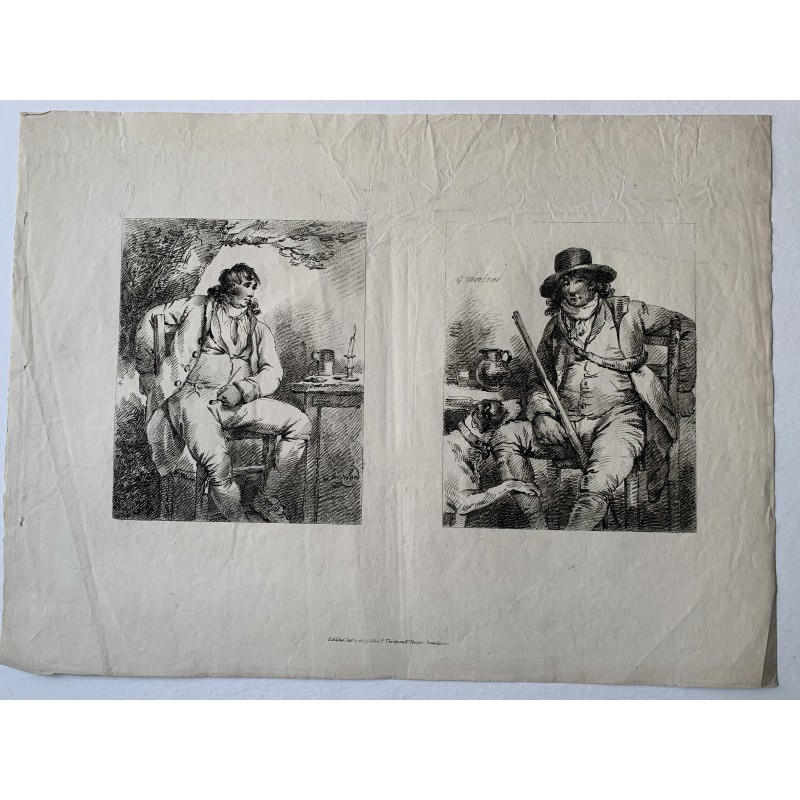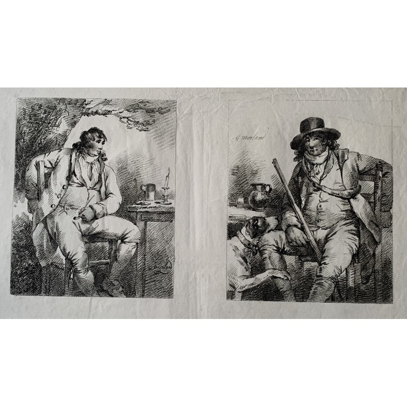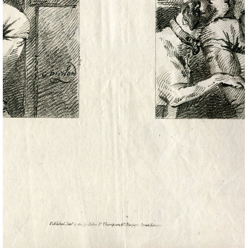 Dos retratos del libro de dibujo. Artista: a partir de obra de George Morland (1763-1804). Técnica: forma de crayón. Fecha de producción: 1801. Publicado por: John Peter Thompson en Londres. Tamaño: Medidas:41x55,5 cms. Estado: Papel arrugado.Recipiente :