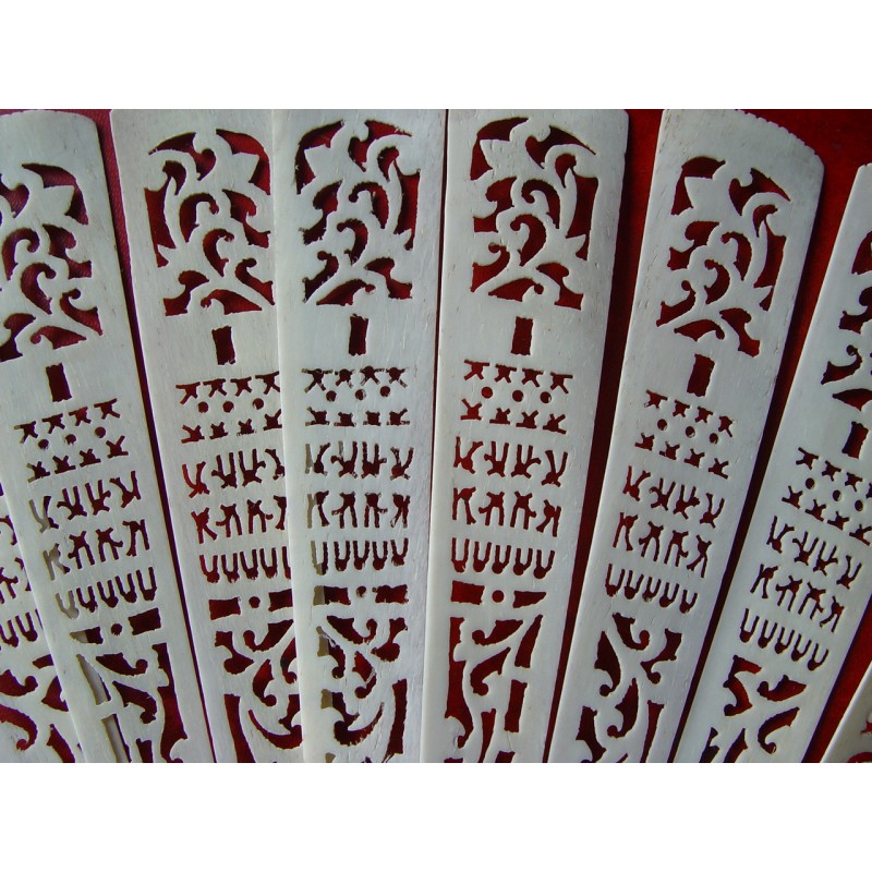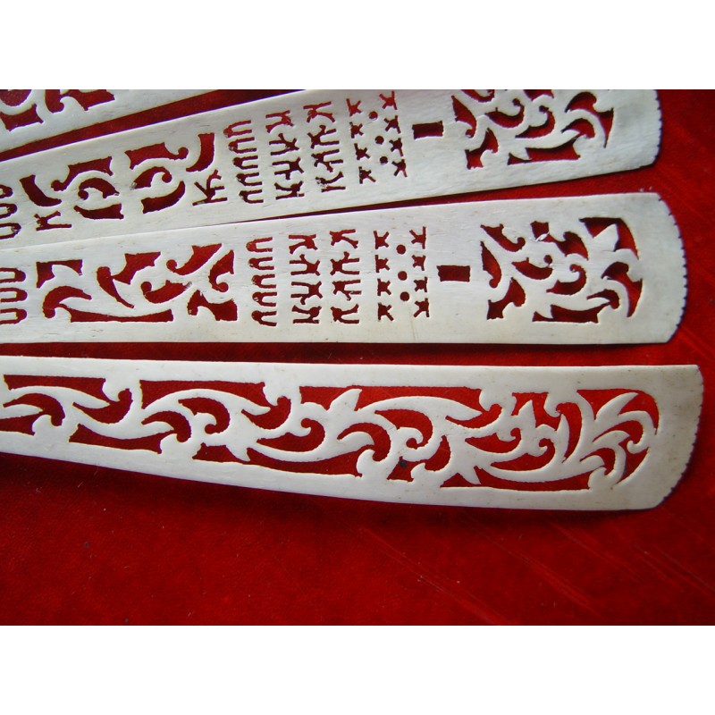 Abanico antiguo de 26,2 cms. de longitud. No falta ninguna varilla. Falta la cinta que une las varillas.Recipiente :