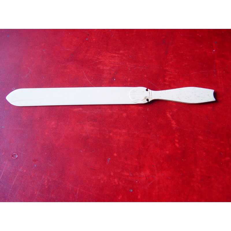 Abrecartas de marfil de 21 cms. de longitud.. Un cortecito en la parte superior..Recipiente :