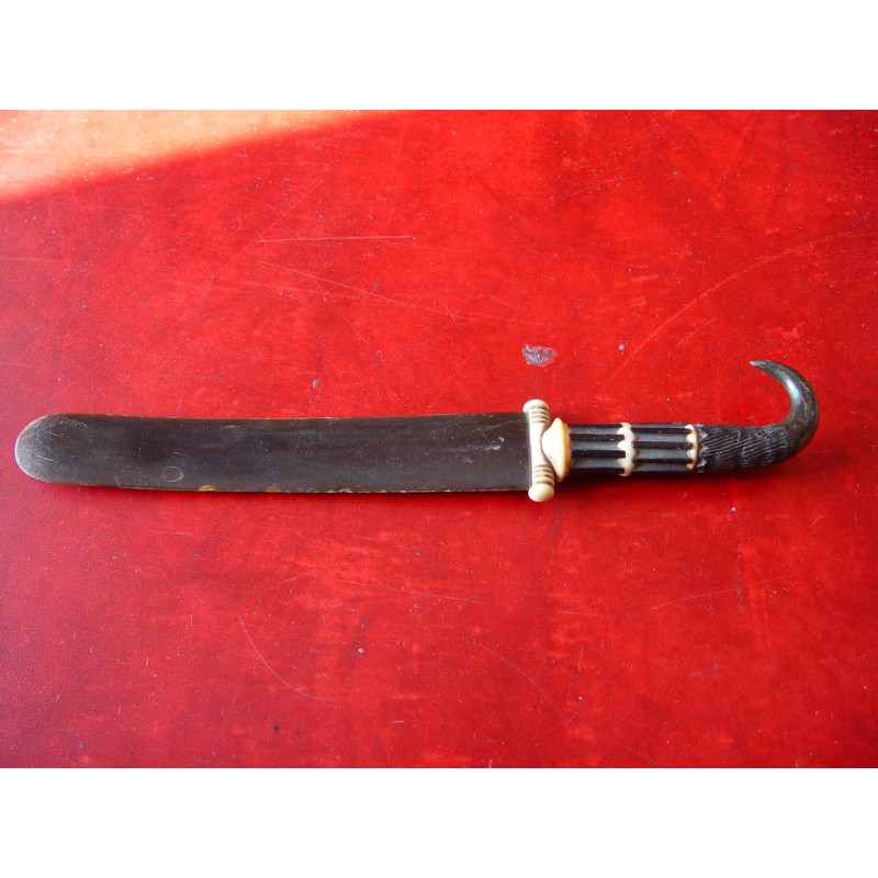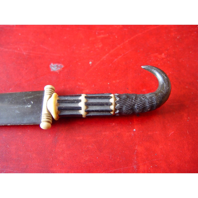 Abrecartas antiguo con mango con forma de garra de 23 cms. de longitud. La hoja está un poco torcida.Recipiente :