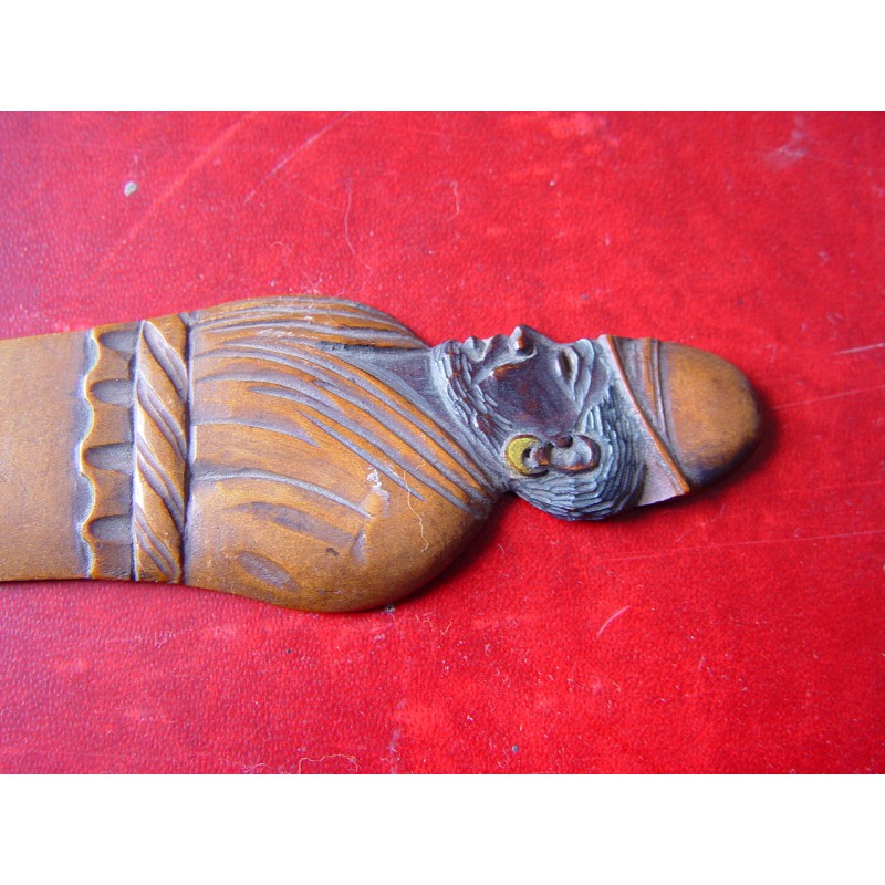 Abrecartas antiguo de madera de 34,5 cms. de longitud con mango tallado.