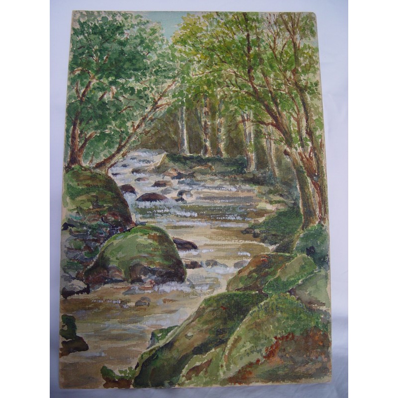 Riachuelo Acuarela de la escuela inglesa del siglo XIX-XX