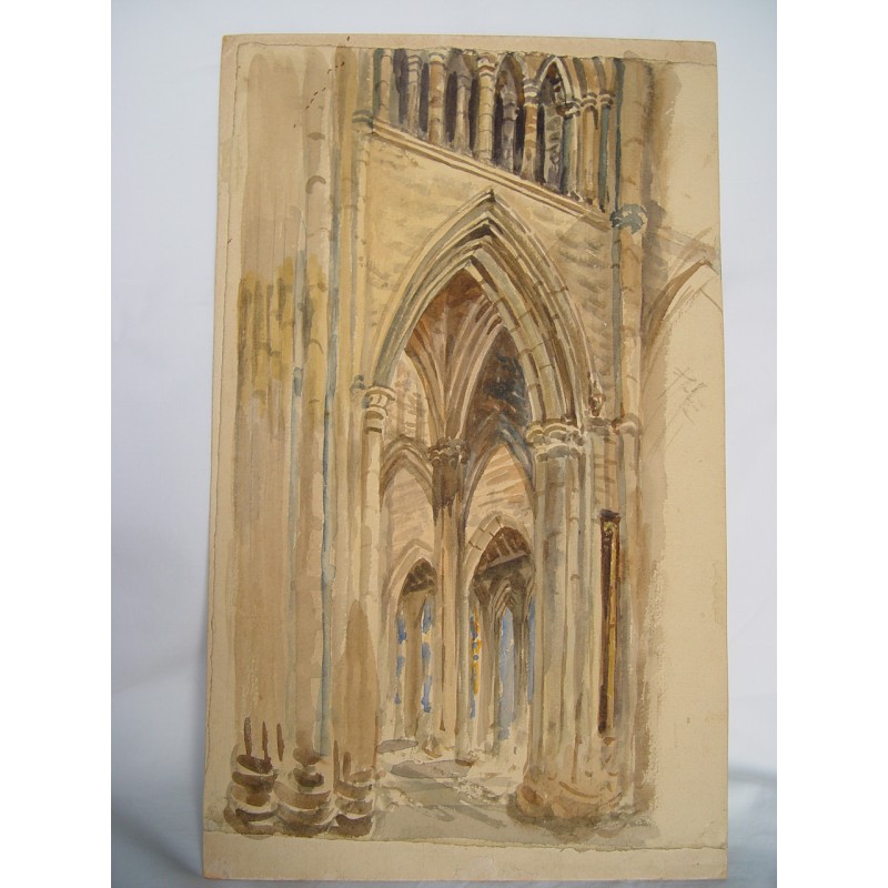 Interior catedral. Acuarela de la escuela inglesa.