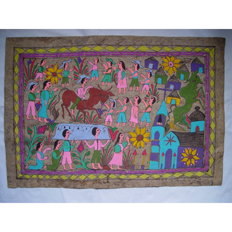 Interesante papiro posiblemente peruano de la primera mitad del siglo XX sobre una fina superficie creo que de corcho.