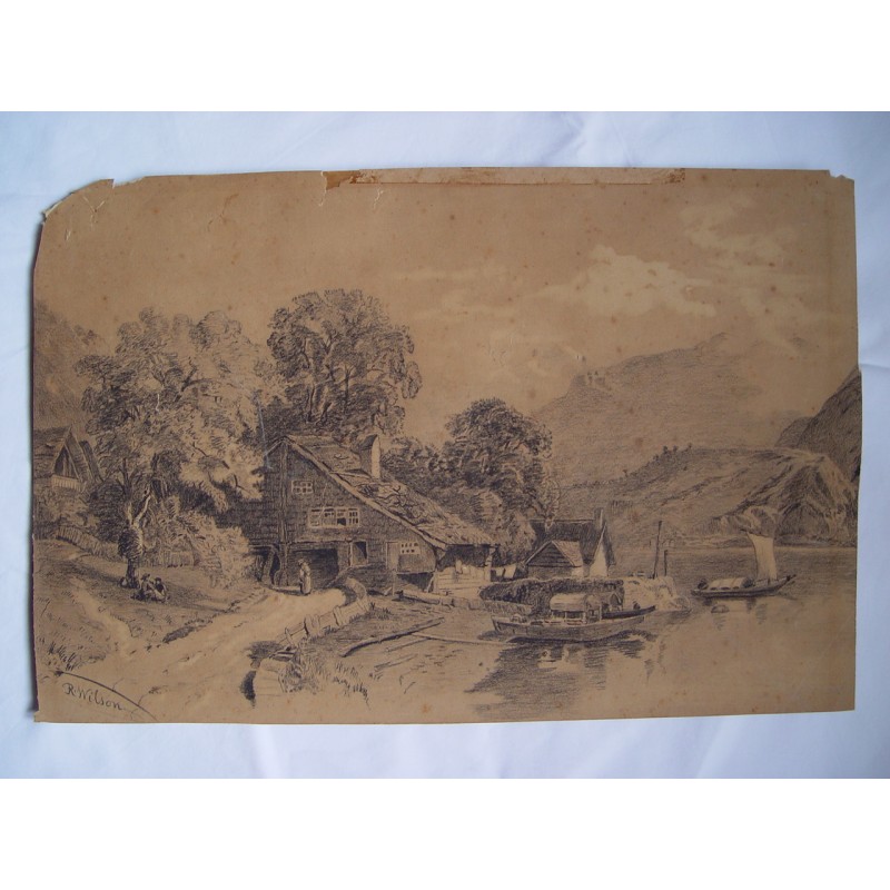 Paisaje. Firmado R. Wilson. Dibujo de mediados del siglo XIX.