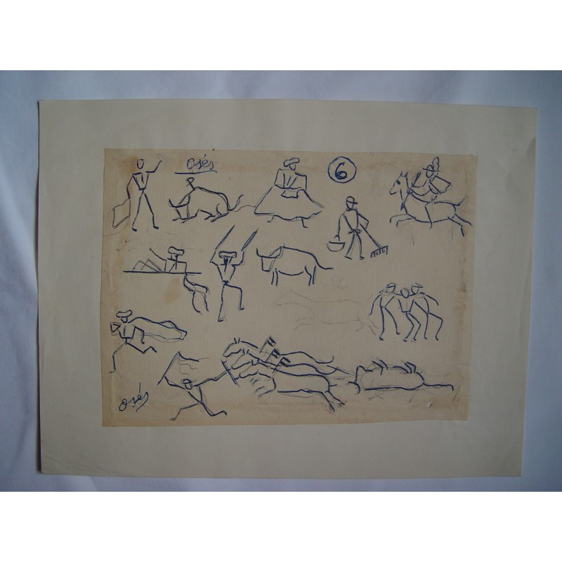 Tema taurino Dibujo de la pintora nacida en Calatayud Carmen Osés (1898-1961).