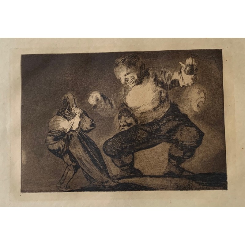 Aguafuerte de Goya. Gigante danzante (Bobalicón). Disparates, 4 (Locuras/Irracionalidades), novena edición (1937)