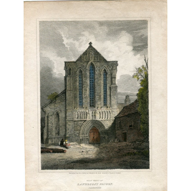 West Front Lanercost Priory Cumberland. 1813 grabado por L.Clenell sobre obra de J. Creig