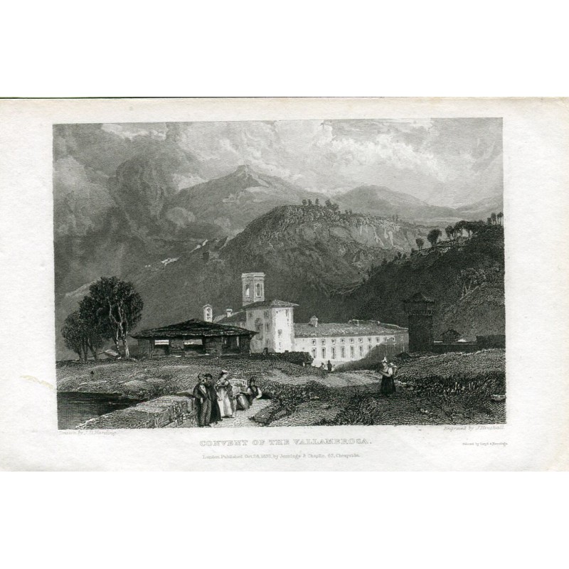 Italia. Convent of the Vallambrosa. Grabado dibujado por J.D. Harding y grabado por J. Henshall en 1832
