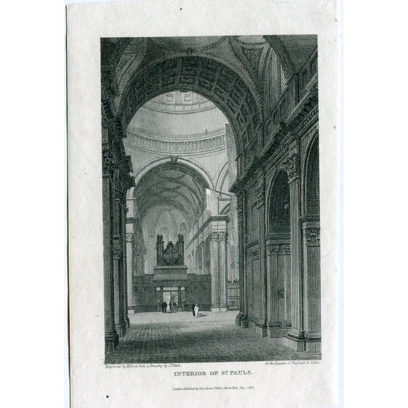 Londres. Interior St. Pauls. grabado por Hobson de un dibujo de J. P. Neale en 1816