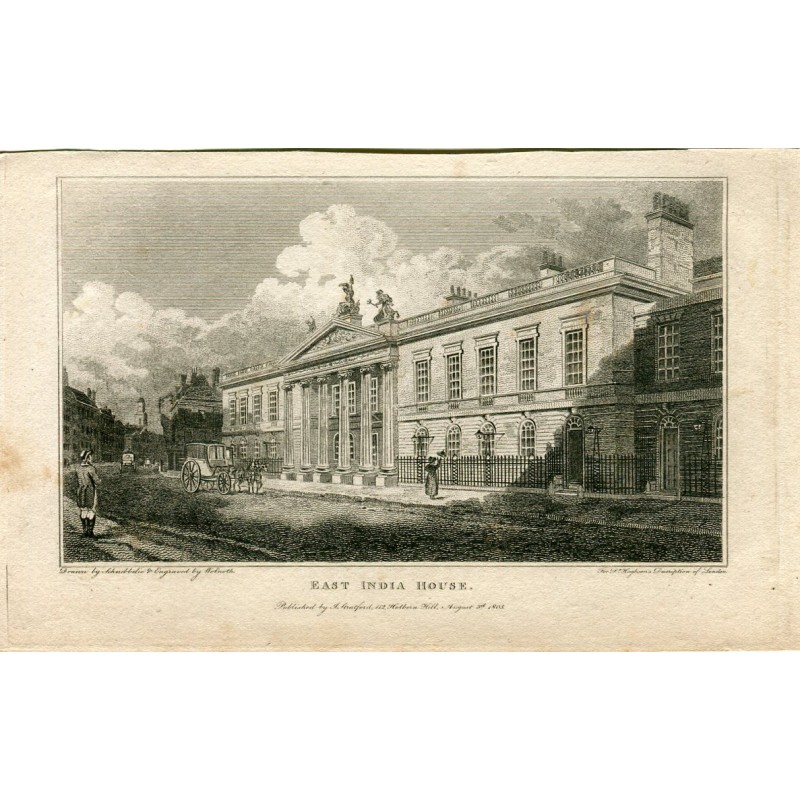 East India House' grabado por Wolnoth sobre obra de Schnebbelie