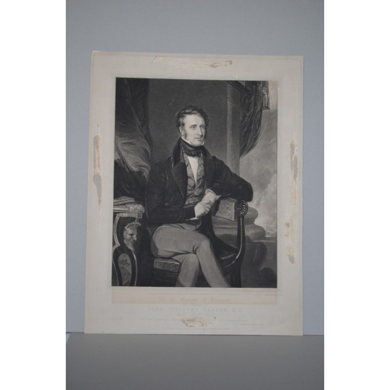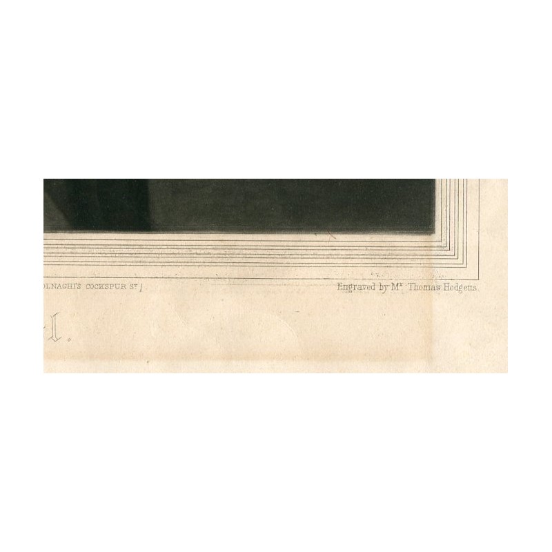 Mezzotinta de gran calidad realizada alrededor de 1820. Publicado por Welch&Gwynne en noviembre de 1837. Lleva señales en los márgenes de haber estado pegado a un paspartus. Medidas 49,6x35 cms.Recipiente :