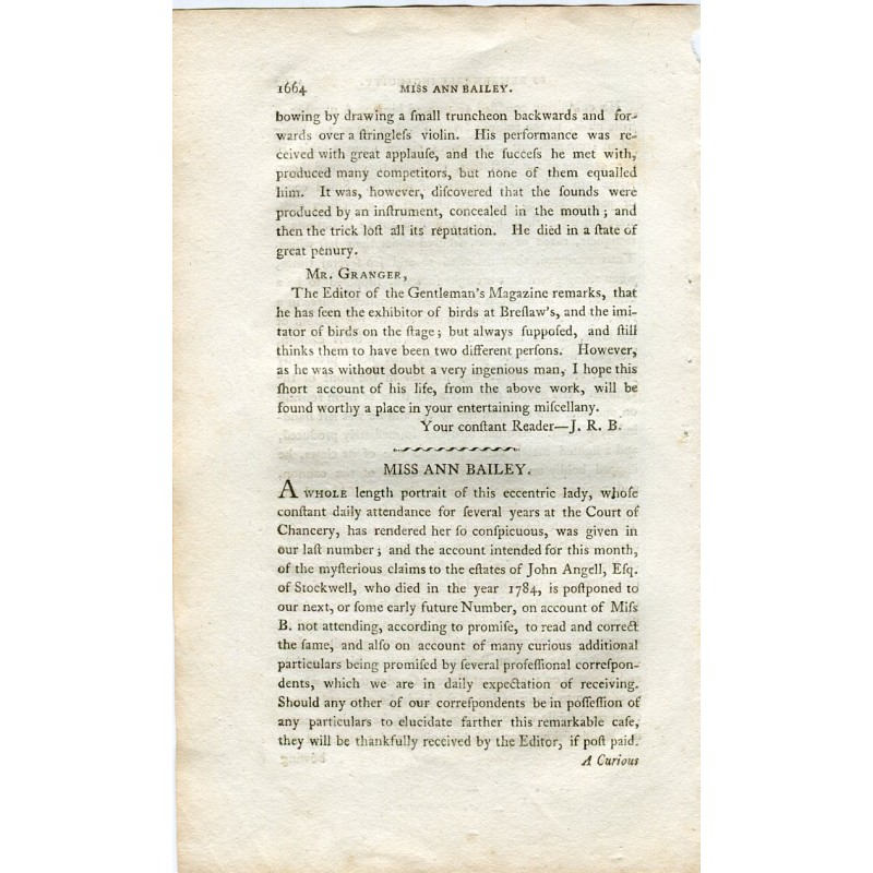 Miss Ann Batley. engraving publicado por Hogg en 1805 del libro Wonderful Museum