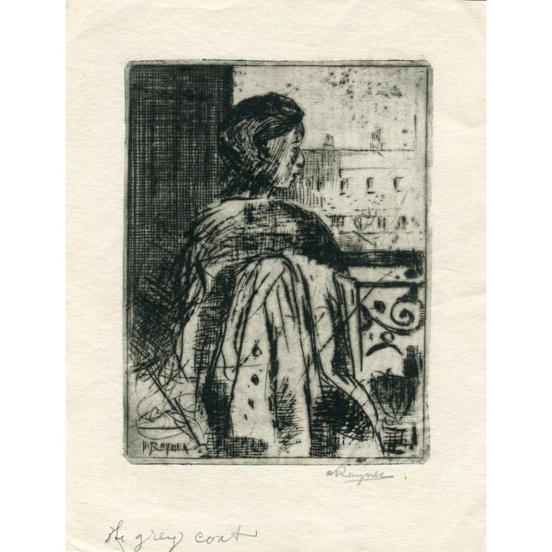 Excelente grabado del pintor australiano Henry Rayner. Firmado a lápiz abajo a la derecha 'H. Rayner'. Titulado a lápiz 'El abrigo gris'. Tamaño: 14,5x10,4 cms. Excelente condición.Recipiente :