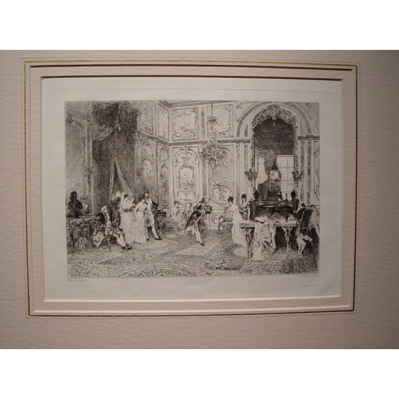Fiesta de Sociedad. Grabado original del siglo XIX, de Adolphe Lalauze (1838-1905). Medidas de la huella 21 x 28,5 cms. Conservación excelente,Recipiente :