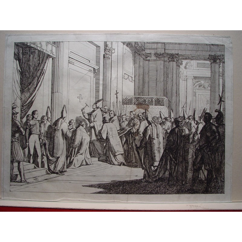 Grabado antiguo original. Medidas de la huella 27x35 cms. La huella esta recortada en la parte inferior. Tiene una mancha en el centro de la imagen. Todo ello es perceptible en la fotografía.Recipiente :