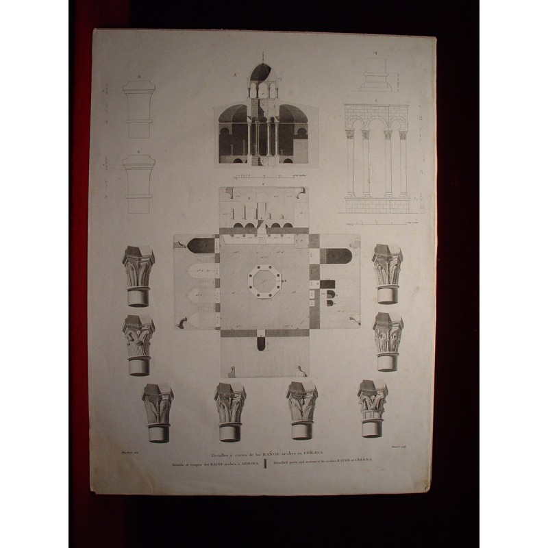 España. Cataluña. Gerona. Detalles y cortes en los baños Arabes de Gerona. Alexandre Laborde (1810-11).