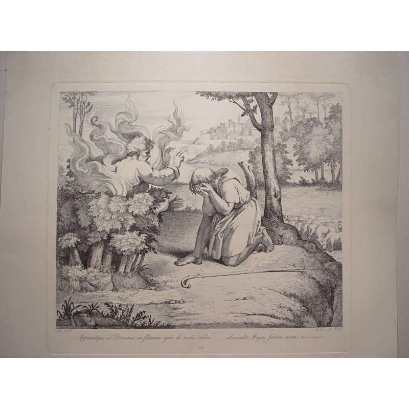 Moisés se cubre el rostro ante la presencia de Dios en la zarza ardiente.