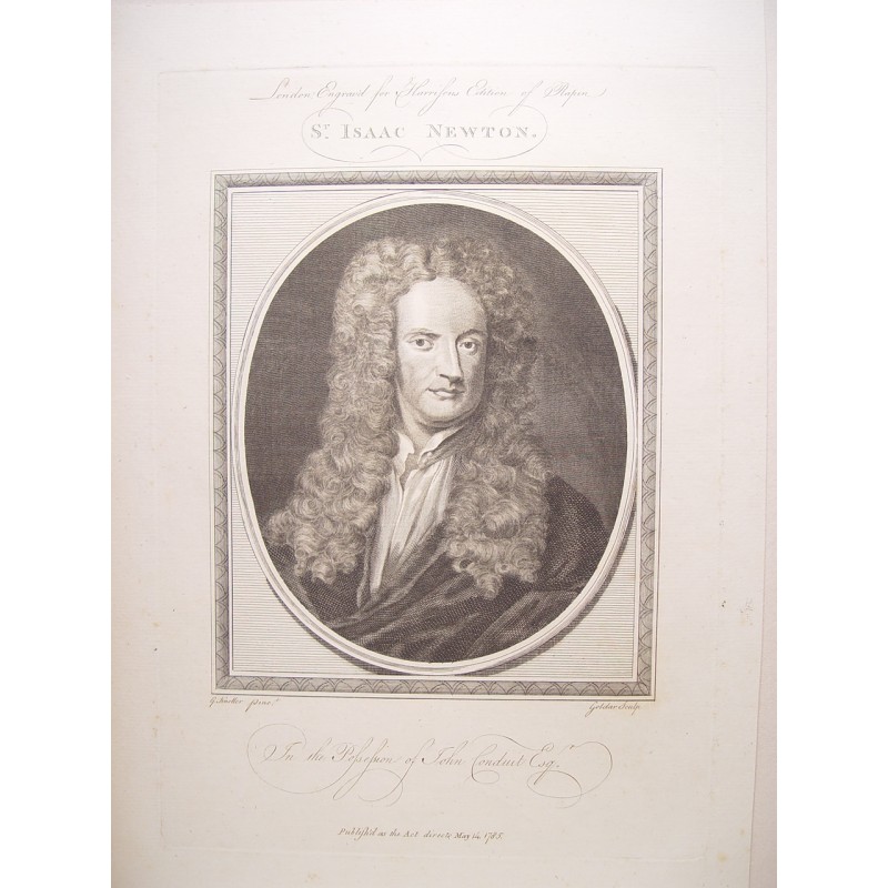 Sr. Isaac Newton. Grabó Goldar (Oxford,1729-Londres,1795), siguiendo obra de Godfrieid. Kneller.(1646-1723)