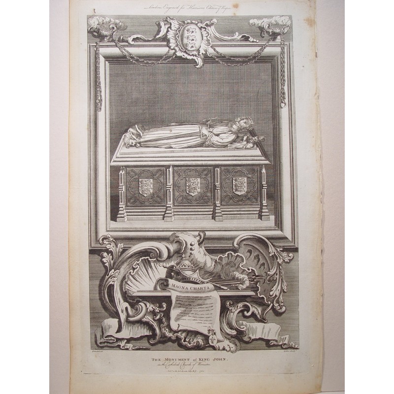 The Monument of King John in the Cathedral of Worcester.Dib. Gravelot. Grabó John Goldar (Oxford, 1729-Londres,1795)