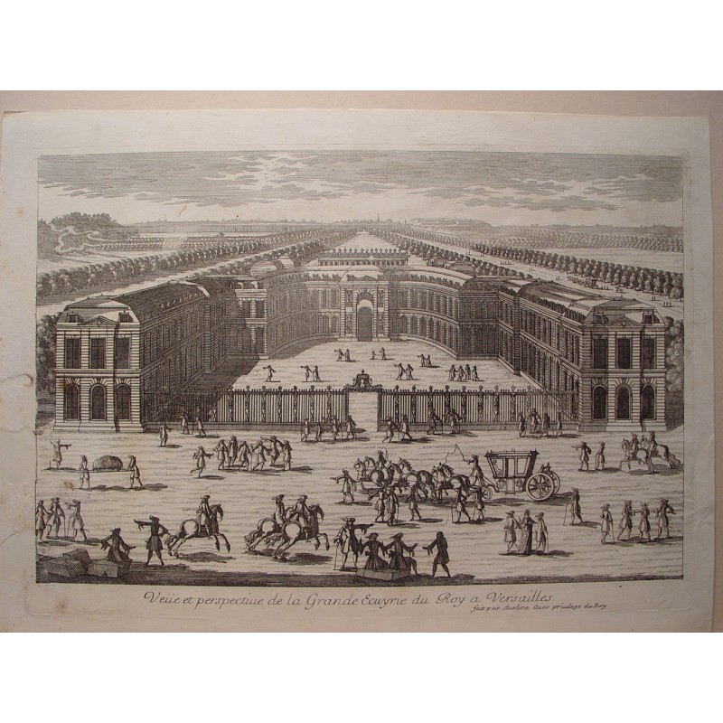 Veue et perspective de la Grande Ecuyrie du Roy a Versailles. Dib..y grabó Pierre Aveline (París,1656-1722).