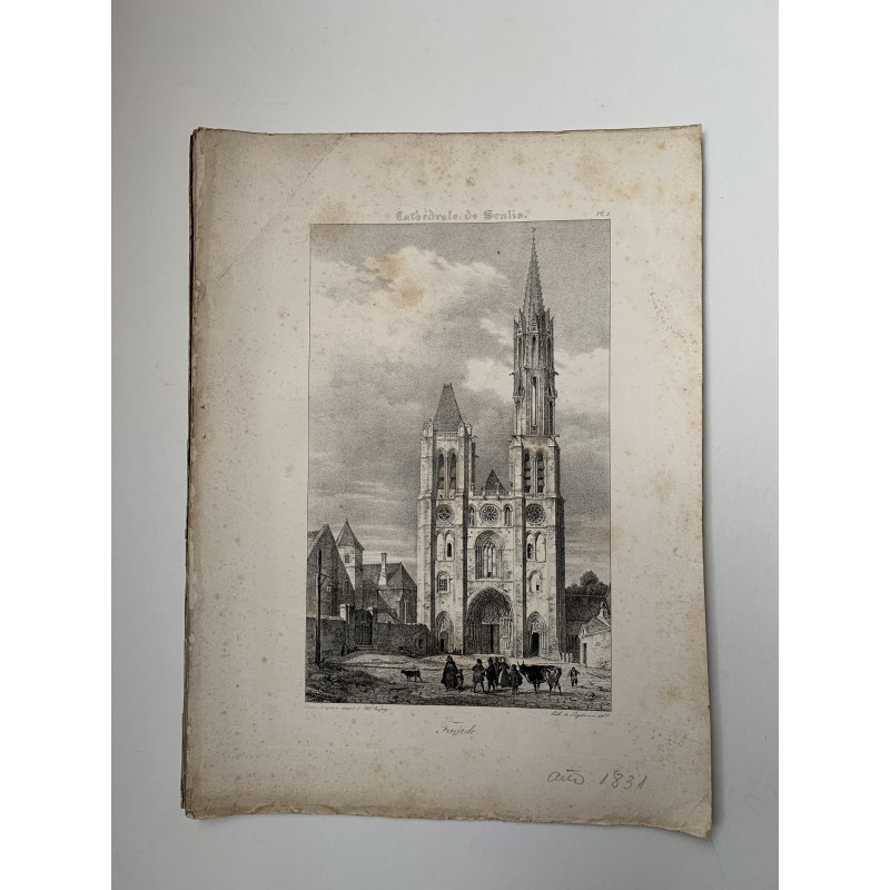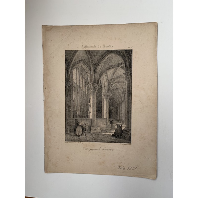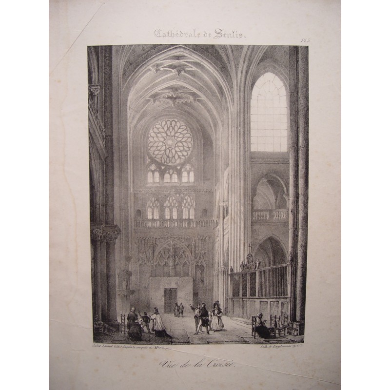 Catedral de Notre-Dame en Senlis. Francia. Conjunto de 5 litografías antiguas. Grabados antiguos (1831)