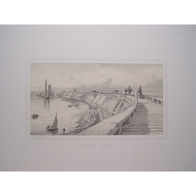 Francia. Calais Pier. Dibujó Charles George Lewis (1808-1880). Grabó Edward William Coke (1811-1880)