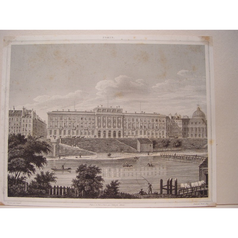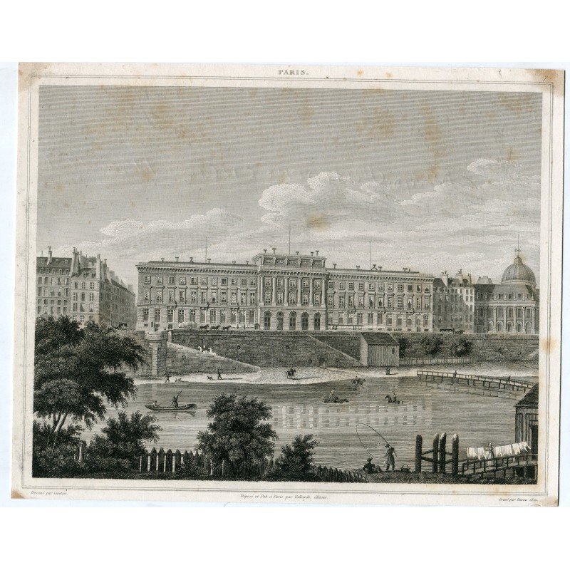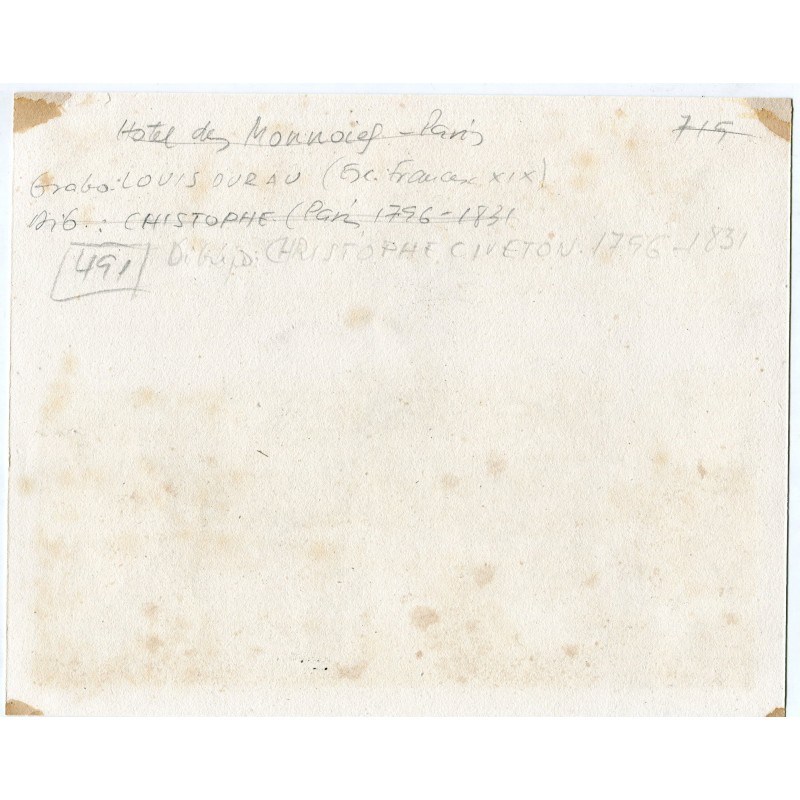 Título: Hotel des Monnaies-París. Artista: Cristophe Civeton (París,1796-París,1831). Grabador: Louis Durau. Fecha de producción: 1820. Medio/Técnica: grabado original en acero antiguo. Tamaño de la imagen: 16,7x21,3 cms. Estado: algo de manchas.Recipiente :