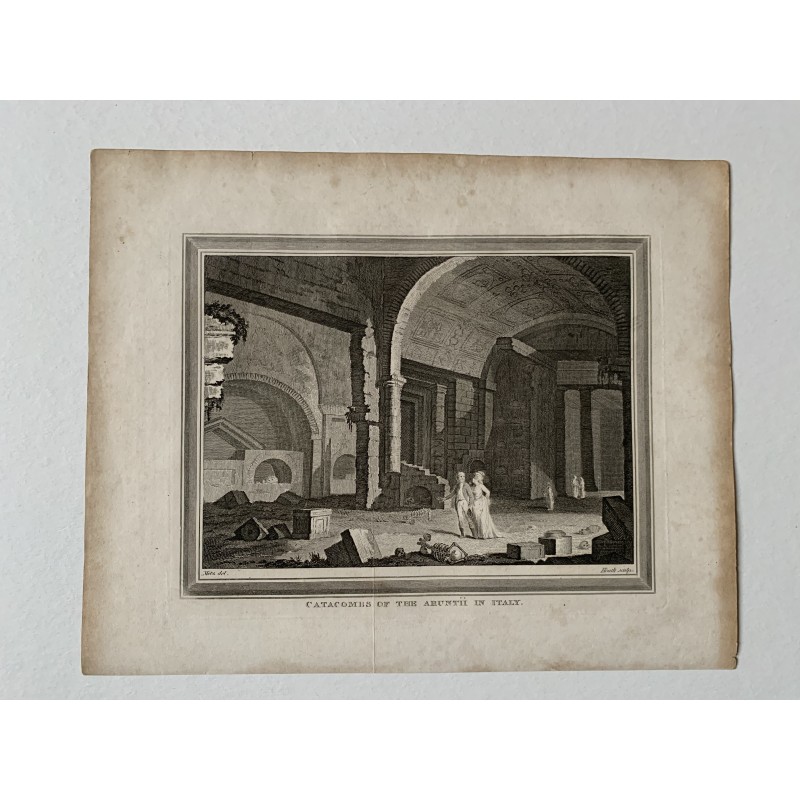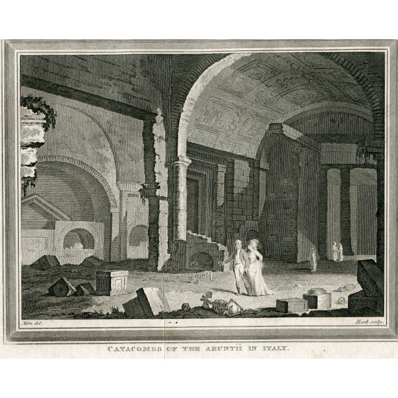 Título: Catacumbas de Arunth en Italia Artista: según Conrad Martin Metz (1749-1827). Grabador: James Heath (1757 - 1834). Fecha de producción: c 1820. Marca de plancha: 16x20 cms. Estado: buen estado.Recipiente :