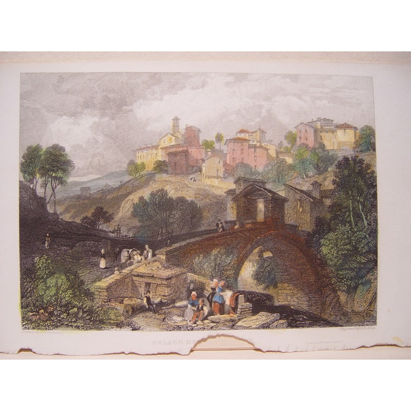 Título: Pegalo, cerca de Florencia. Artista: a partir de obra de James Duffield Harding (1708-1863). Grabador: James Bayle Allen (1803-1876). Fecha de producción: 1832. Tamaño de la imagen: 10,5x14,8 cms cms. Condición: signos de aspereza a lo largo del borde inferior por haberlo quitado de la encuadernación. La inscripción se ve afectada pero no la imagen.Recipiente :