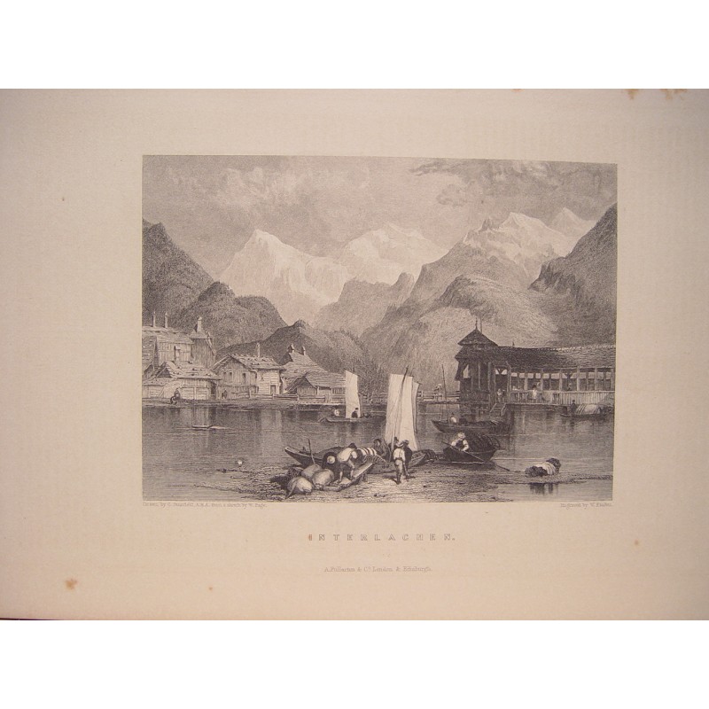 Suiza. Interlachen. Dib. G. Clarkson Stanfield (1828-1876) segun obra de W.Page (hacia 1816-1860). Grabó W. Finden (1787-1852)