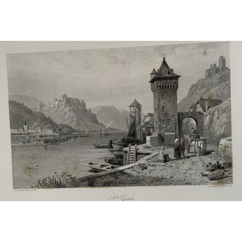Grabado de St. Goar, en el río Rin, de PICTURESQUE EUROPE, publicado por Cassell and Company. Artista: Thomas Leeson Rowbotham.(1783-1853) Grabador: Jean Jacques Outhwaite Tamaño de la plancha: 13,8x22 cms. En buena condición. Algún manchas como se puede apreciar en la imagen.Recipiente :
