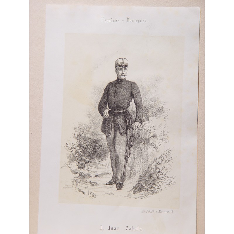 Litografía original del siglo XIX. Juan Zabala fue gobernador de Barcelona. Presidió el gabinete de la 1ª República española y participócomo general en la batalla de Tetuán. Medidas:de la imagen 18,5x11,5 cms. Buena conservación.Recipiente :
