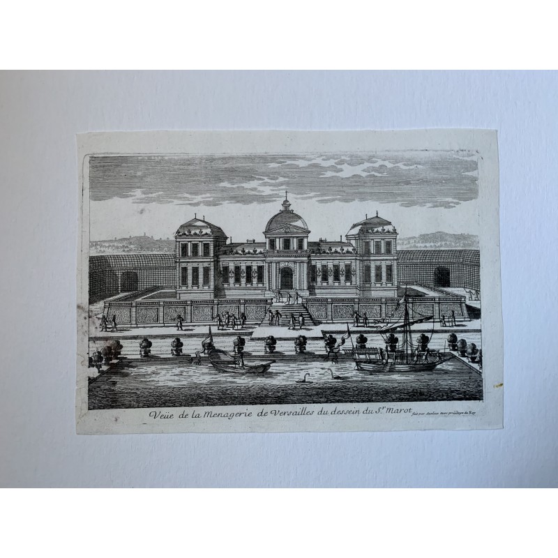 Veue de la Menagerie de Versailles du dessein du Sr. Marot. Pierre Aveline el Viejo. París, 1656-1722.