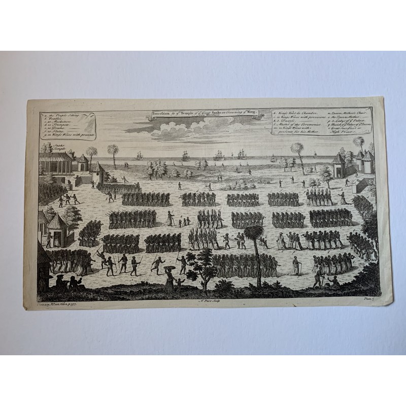 Título: Procesión al Templo de la Gran Serpiente en Cronning the King desde Marchais. Grabador: Nathaniel Parr (activo 1742-1751) Fecha de producción: c.1750. plancha marca: 21,2x36,7 cm. Estado: bien.Recipiente :