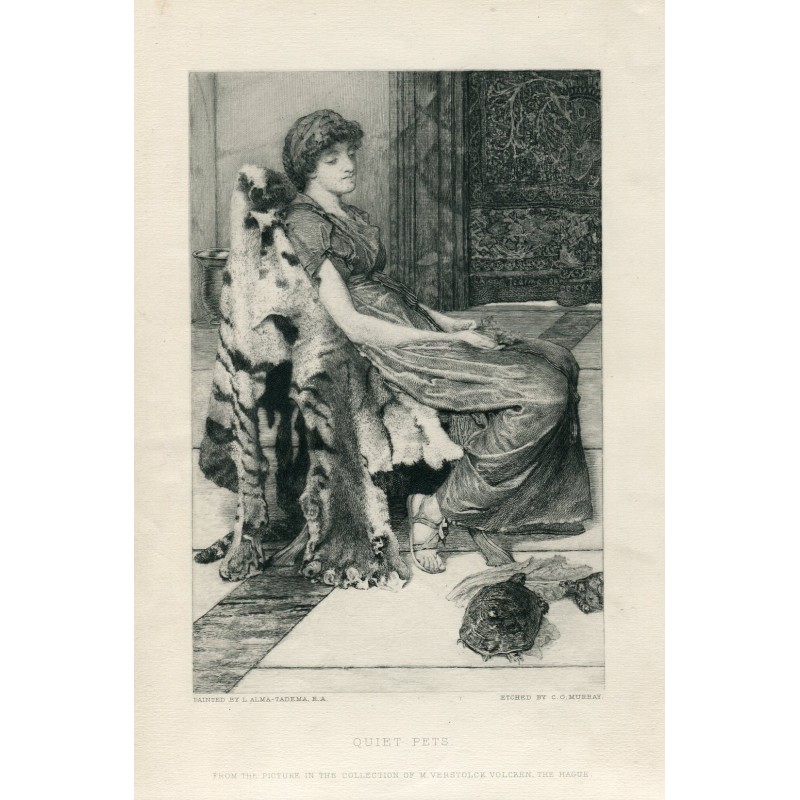 Quiet pets. grabado por C.G. Murria sobre obra de Alma Tatema.